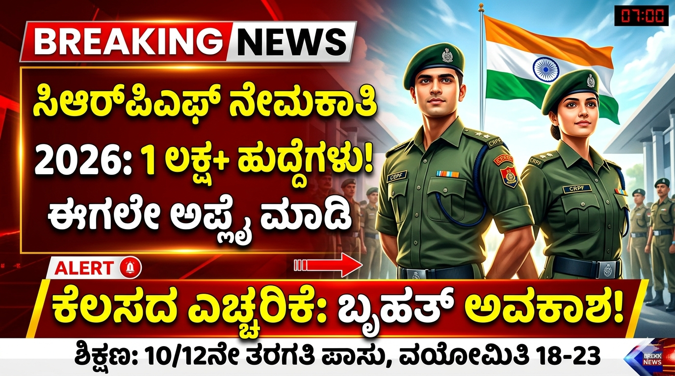 ರಕ್ಷಣಾ ಕ್ಷೇತ್ರದಲ್ಲಿ ವೃತ್ತಿಜೀವನ ರೂಪಿಸಿಕೊಳ್ಳಲು ಬಯಸುವ ಯುವಕರಿಗೆ ಇಲ್ಲಿದೆ ಒಂದು ಭರ್ಜರಿ ಸುದ್ದಿ. ಕೇಂದ್ರ ಮೀಸಲು ಪೊಲೀಸ್ ಪಡೆ (CRPF) ಸಿಪಾಯಿ (ತಾಂತ್ರಿಕ, ಟ್ರೇಡ್ಸ್ಮನ್ ಮತ್ತು ಪಯೋನೀರ್) ಹುದ್ದೆಗಳ ಭರ್ತಿಗೆ ಅಧಿಕೃತ ಅಧಿಸೂಚನೆಯನ್ನು ಹೊರಡಿಸಿದೆ.