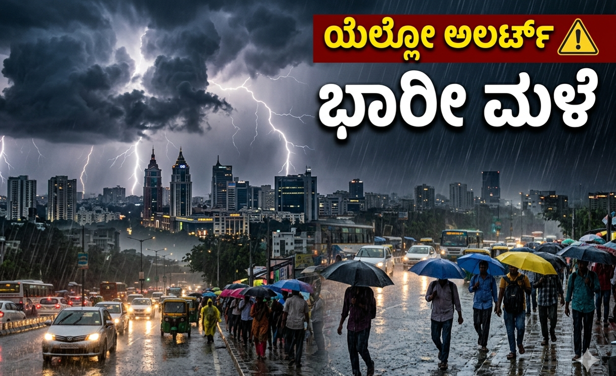 ಈ ಹಿನ್ನೆಲೆ ರಾಜ್ಯದ 14 ಜಿಲ್ಲೆಗಳಿಗೆ ಯೆಲ್ಲೋ ಅಲರ್ಟ್ ಘೋಷಿಸಲಾಗಿದೆ. ಈ ಲೇಖನದಲ್ಲಿ ಇಂದಿನ ಹವಾಮಾನ ಪರಿಸ್ಥಿತಿ, ಯಾವ ಜಿಲ್ಲೆಗಳಿಗೆ ಎಚ್ಚರಿಕೆ, ಮುಂದಿನ ದಿನಗಳ ಮುನ್ಸೂಚನೆ ಮತ್ತು ಸಾರ್ವಜನಿಕರಿಗೆ ನೀಡಿರುವ ಸೂಚನೆಗಳ ಬಗ್ಗೆ ಸಂಪೂರ್ಣ ಮಾಹಿತಿ ನೀಡಲಾಗಿದೆ.